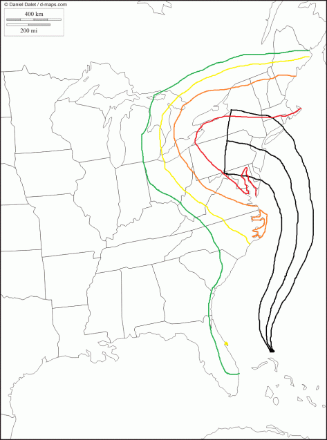 This is supported by few models however and is only there for the European model (ECMWF) which predicts a DC landfall. This is the number one performer among models. There are several less reliable models that like this scenario as well. The second best performer has Sandy making a direct hit on NYC Sunday evening.