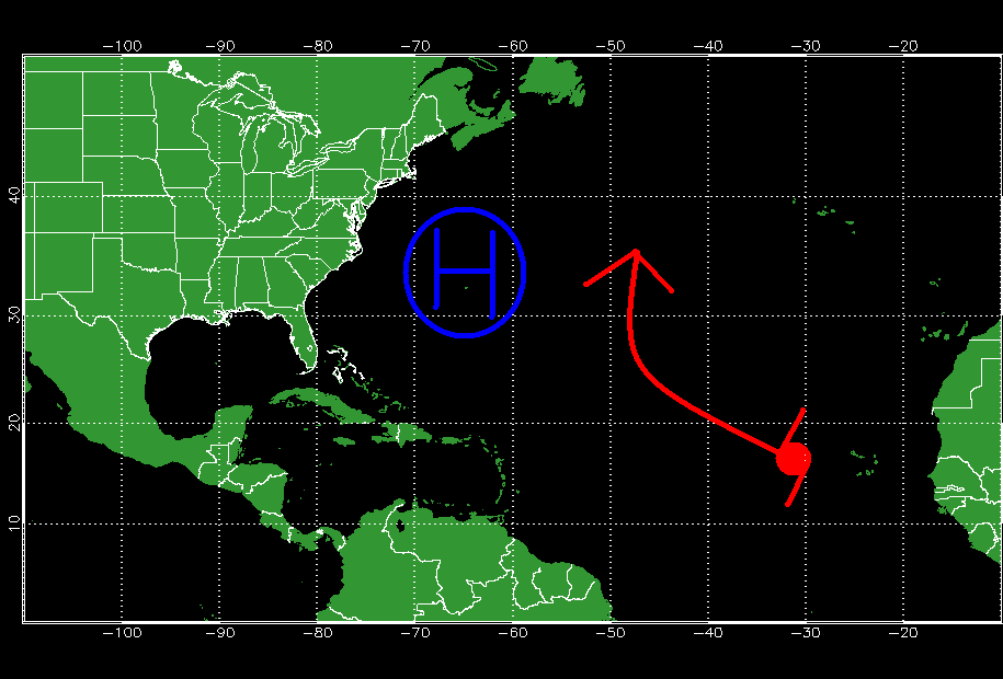 Track- This all depends on intensity. As discussed in yesterday’s post, if a storm is strong enough, then it will be more capable of being tugged north by a trough in the upper levels of the atmosphere. This is what will have the most effect on track.