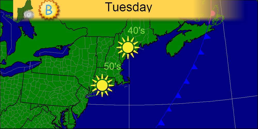 A coastal low will pass far enough offshore that impacts will be limited to some clouds mainly along the coast. The big difference you will notice today is the temperatures. It will be a lot cooler that usual especially in areas along the coast that haven’t seen temps in the low 40’s since last spring. Enjoy the cool weather!