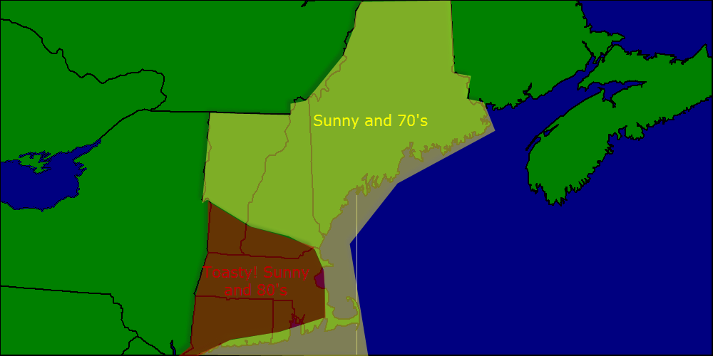 Used MAV/MET temps corrected for marine influence (Coastal SNE won’t make it to 80 but coastal NNE will have no problem making it to 70). NAM/GFS/SAT used for clouds/lack therof.