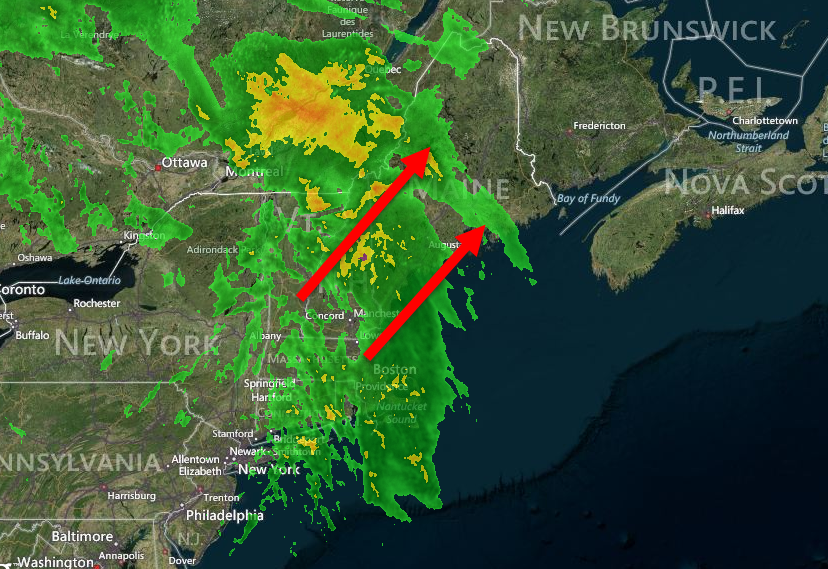 Today will feature some morning snow as a low pressure system moves well offshore which has already accumulated in some areas especially near the coast. This will be a wet snow as temps are around freezing and will also be light. As of 5:00 AM, our house in Yarmouth had 2″ on the grass, 0.5″ on the brick walkway, and 0″ on the pavement. Overall, this will not be a high impact storm, just enough to put a little white on the ground. Snow is already winding down across western areas. Expect all snow to clear the coast by 8:30 AM.