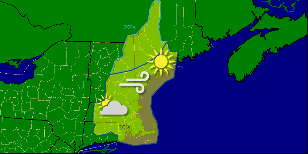Today will feature a mix of sun and clouds across the region with sun taking over a larger share of the sky. Temps will be the coldest they’ve been all week (and all season) today with highs across the entire state of Maine unlikely to break freezing. Everyone else sees 30’s with the possible exception of the Cape and Islands who likely break 40. Winds will be gusty out of the NW today and will lead to ‘feels like’ temps in the teens to lower 20’s.