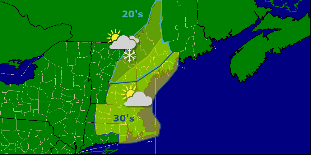 Today will feature the latest dip in the temperature rollercoaster with NW winds bringing in cooler air. Expect highs to be in the 20’s and 30’s but a stiff NW breeze blowing at 10-20mph will make things feel just a tad cooler then they actually are. Sunny skies will dominate the area with the exception of the mountains where upsloping will provide clouds and a few flurries as well.