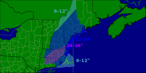 There’s going to be a lot of snow. Amounts across most of the area will be on the order of 1-2 feet with 2-3 feet possible across CT and extending NE from there. Details are on the map below.