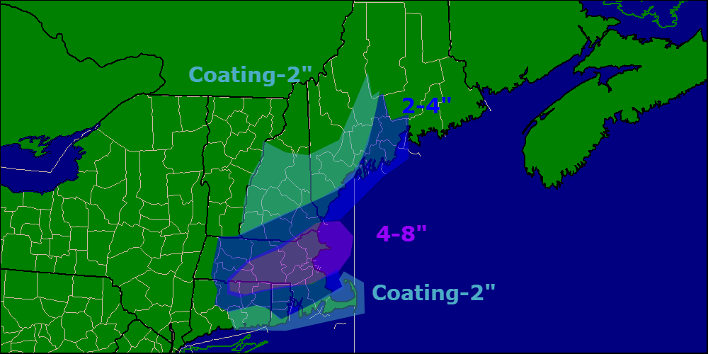 Here are my thoughts regarding snow accumulations. The Boston area looks to be the jackpot yet again while northern areas miss out.