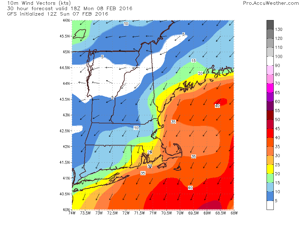 This snow will be light and dry which is nice for shoveling but will be unfortunate because the gusty winds will have no problem blowing around the light, fluffy snow. For this reason, expect blowing and drifting snow to cause visibility issues especially tomorrow afternoon (map valid 1PM tomorrow). Winds are likely to range from near calm in the mountains to over 30mph at the coast.