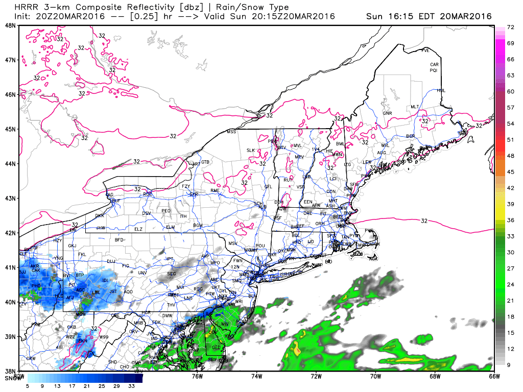 In terms of how this all goes down, snow will move in late tonight and be light to moderate through midday tomorrow before tapering off. Really this one only impacts the coast with the mountains and NW foothills seeing but a few flakes. Take a look at the simulated radar above. Those not in the blue (snow) during this loop likely escape with a few flakes, if any at all. The Midcoast could see some heavy snow bands as the storm passes by.