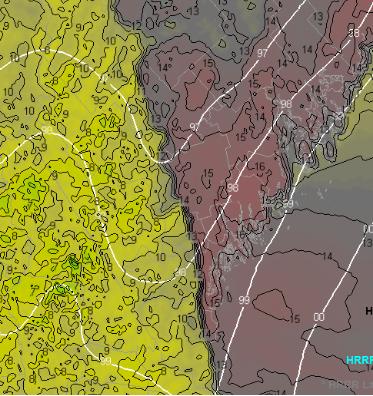 HRRR Showing The Dryline This Afternoon Over Maine.