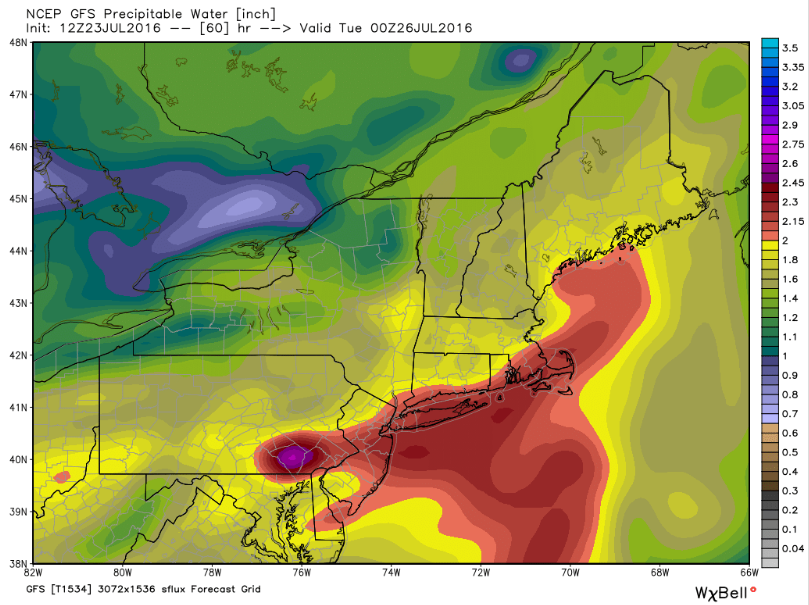 GFS Showing A Juiced Atmosphere Monday. Image Credit: Weatherbell