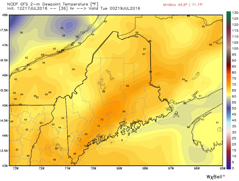 There will be two parts to today’s weather. The first is already underway across the region and will feature variable clouds, warm temps, and slowly but surely increasing humidity. Highs will warm into the 80’s for most with some upper 70’s along the coast. All in all, most of the day will be absolutely lovely, albeit a bit sticky. The second part of the day will begin in the late afternoon over Western NH and slowly move E into Maine by late evening. This will be the showers and thunderstorms section of today’s weather. The ingredients are not here for big severe storms, but there is plenty of moisture in the air and a period of wet weather is expected, possibly with a few rumbles. The best chance for a thunderstorm will be over western NH where a few strong wind gusts are possible. Otherwise, most areas just see showers.