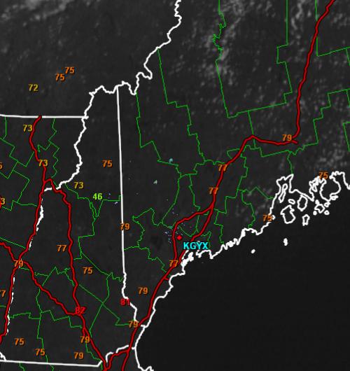 A warm front has pushed through this morning and is currently moving into Northern Maine. A cold front lurks back to the west and will approach this evening. Storms will develop to our west ahead of that front and will be weakening as they head east. Far W NH may see a stray severe wind gust as storms roll through while the midcoast is likely to see a line of broken sprinkles. In between, a line of showers with an occasional rumble can be expected. The timeframe for this will be late afternoon for W NH through very early tomorrow morning (2AM or so) for the midcoast. Highs today will range mostly through the 70’s with some upper 60’s north and some low 80’s south.
