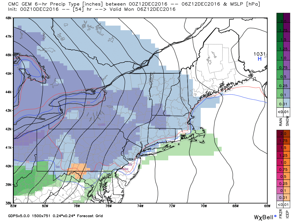 Snow will move into the region late tomorrow night and will continue into Monday. Everyone will start out as snow with a few inches expected by daybreak Monday. After that, the forecast becomes trickier for southern and coastal areas as warm air threatens to intrude enough to cause some mixing with sleet or rain. Any mixing will be limited to the coast, southern York County, SE NH, and the midcoast.
