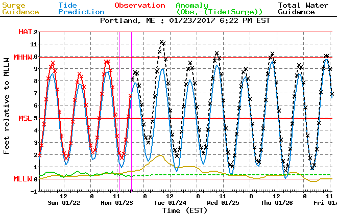 Tide/Water Guidance For Portland. Image Credit: NWS/NOAA