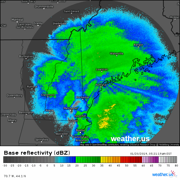 If you look closely, you’ll see a more speckled appearance to the radar near Rochester NH. That’s the fly in the ointment of today’s weather: warm air moving in aloft that will change snow over to sleet SE of the mountains.