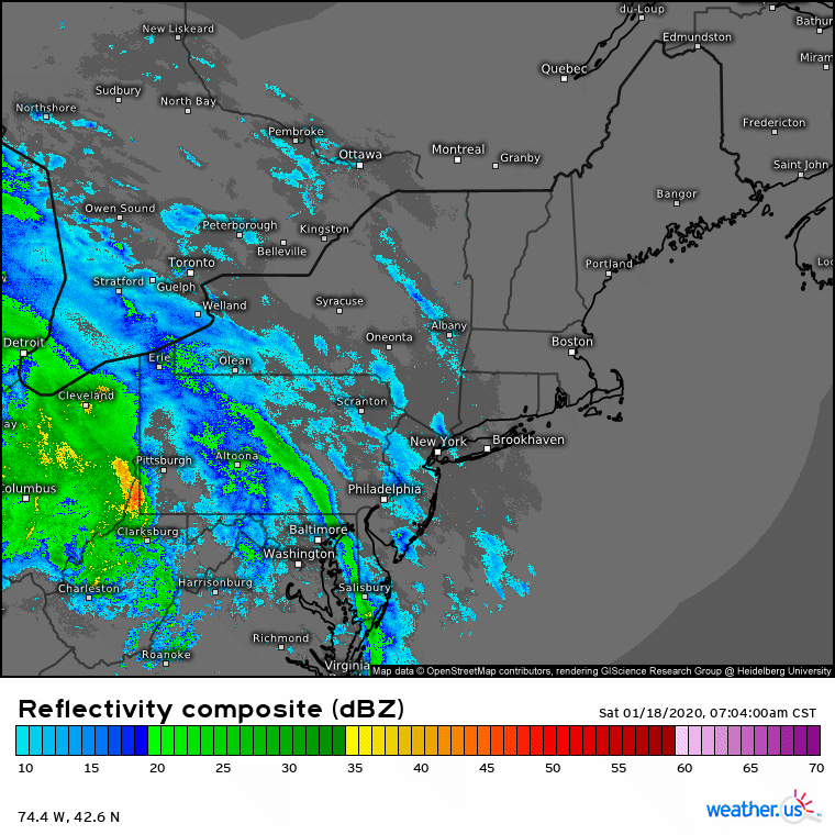 Composite radar imagery shows precipitation struggling to advance northeastward this morning as most of the leading-edge snow evaporates in the layer of very dry air near the surface.