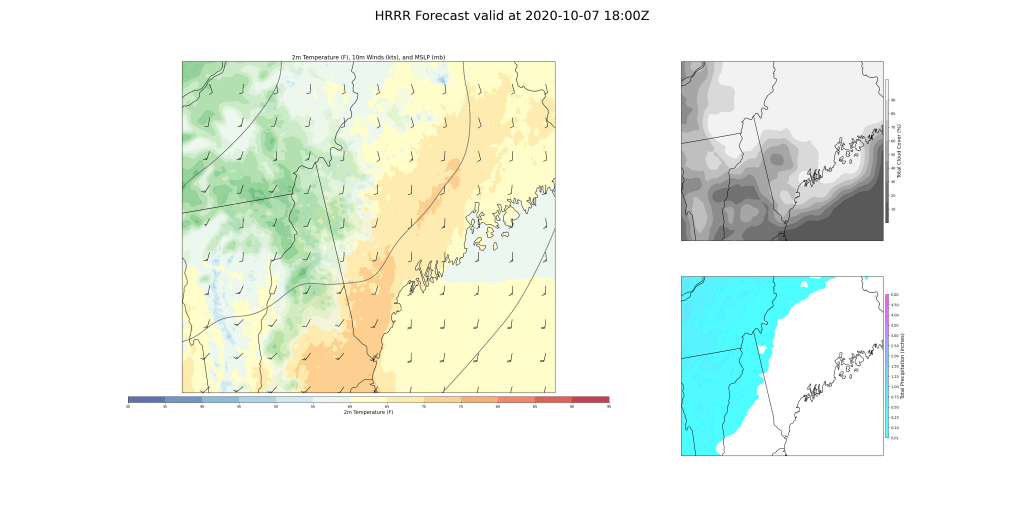 Today will feature breezy and unsettled conditions as a strong cold front moves through the area. The day will begin on the warmer side ahead of the front before colder air surges in this afternoon. Look for highs to jump up into the 60s across the mountains/Midcoast and low-mid 70s in southern/western areas.