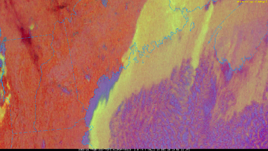 This satellite loop shows clear skies over the region this morning with one neat exception” some lake effect downwind of Sebago Lake. Usually, Sebago is either too small or too frozen to support lake effect clouds. The ingredients have come together today because we have cold air while the lake is still open, and light NNW winds oriented parallel to the lake’s major axis (long side) allow air parcels an unusually long time over water to pick up heat and moisture. I’m not sure if these clouds are deep enough to produce any snow, but if someone happens to be heading down Rt 25 west of Windham this morning, I’d be really curious to know!