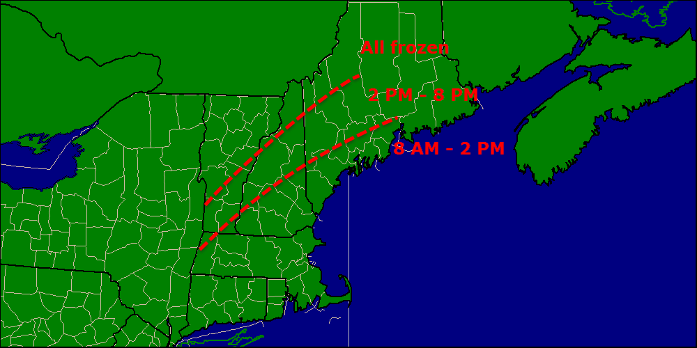 Snow/sleet/freezing rain will change to rain at some point this morning at the coast with islands and the tips of the peninsulas going first between 7 and 9, with most of the rest of the coast switching between 8 and 10 with the exception of sheltered interior bay areas who could hold out until 11 or 12. Everyone at the coast looks to be liquid after noon.