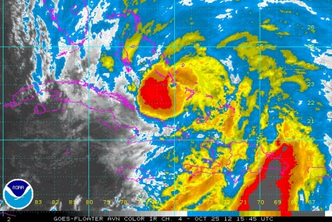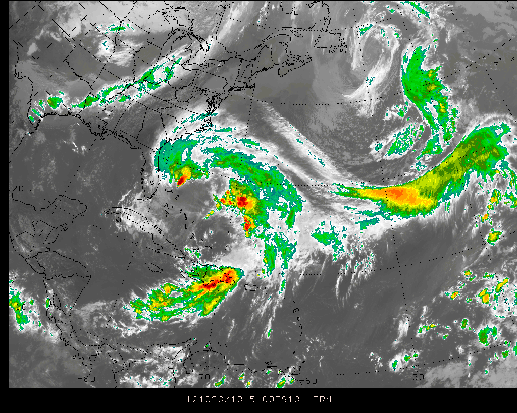 Sattellite imagery of Sandy moving off of Cuba.