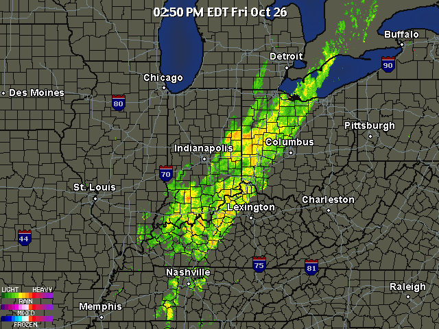 Rain is now moving into the Detroit area now and is continuing steadily in most of the mid-atlantic states.
