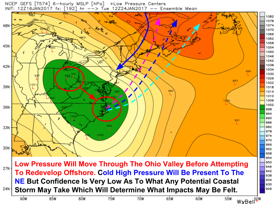 12Z GEFS Ensembles Showing Rumblings Of Action Early Next Week. Any Specifics Remain Incredibly Uncertain. Image Credit: Weatherbell