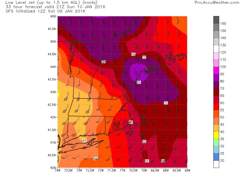 12Z GFS Showing Very Strong Winds Just Above The Surface. Credit: Accuweather